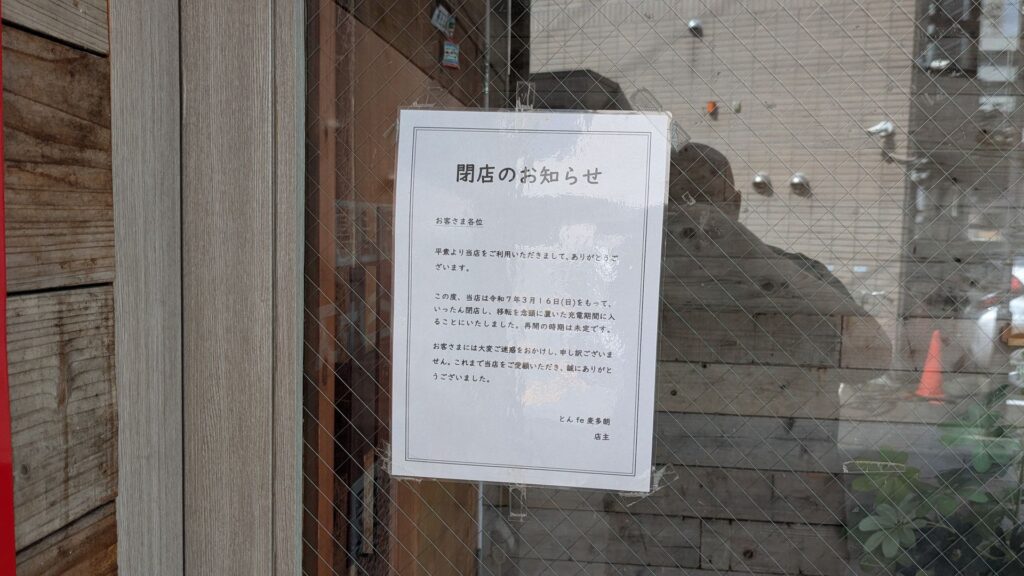 なんとなく気になってドアを見ると、閉店の旨を告げる張り紙があった。